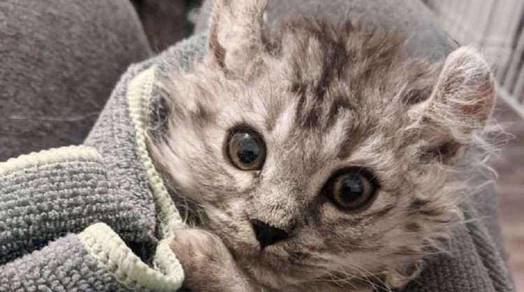 Un gattino lasciato dopo il parto ora trionfa grazie all'aiuto dei volontari e alla propria volontà.