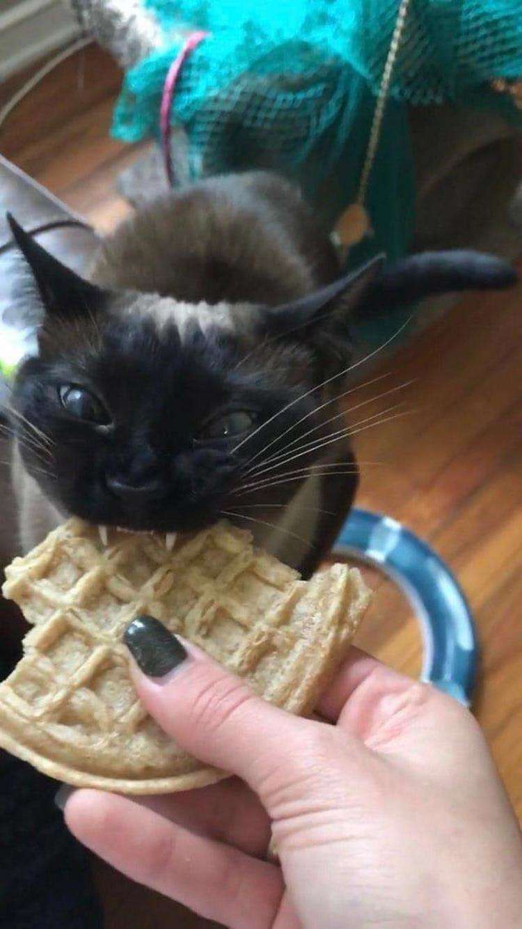 “Quando i gattini crescono e io muovo un comodo sedia qui, lei lo farà (mettersi in ginocchio). Adora farsi graffiare sotto il mento e adora strofinarsi contro le mie gambe mentre preparo uno spuntino,” dice Jen.