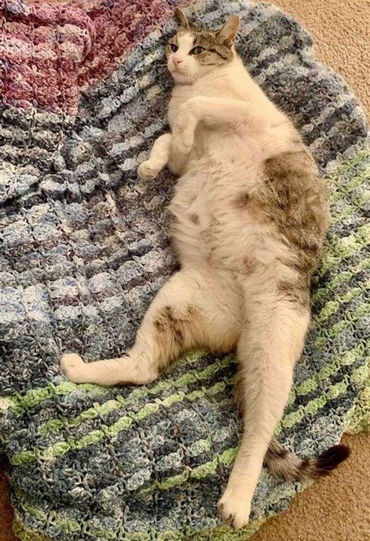 Alla futura mamma è piaciuto molto il camera. Si è arrotolata su tutte le coperte, esponendo la sua pancia rotonda all'affetto.