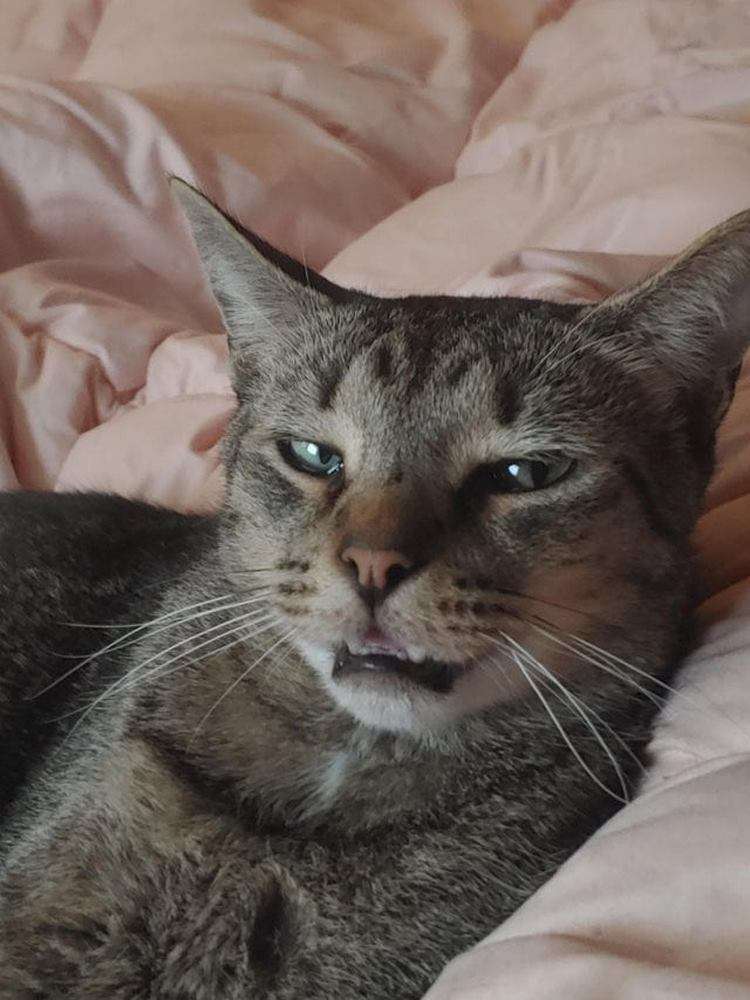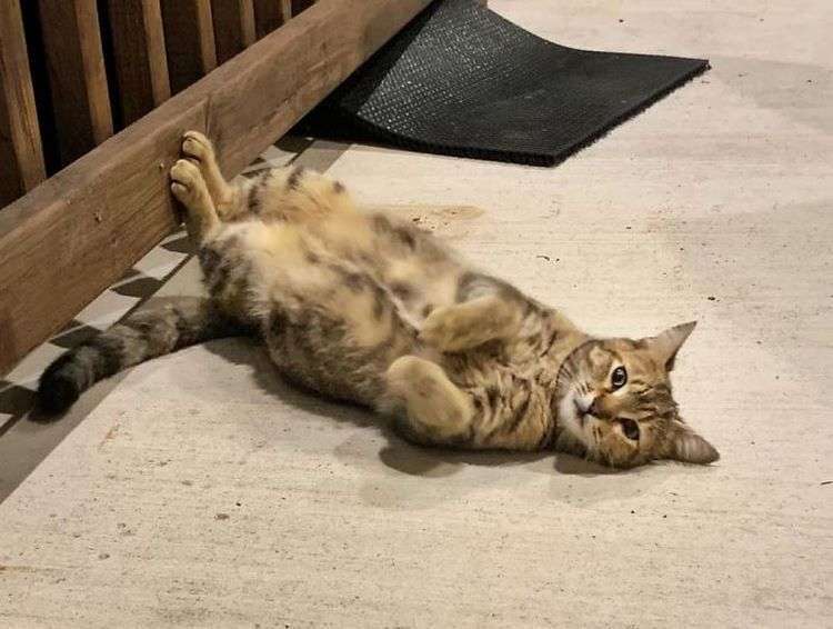 Il l'ex bambina di strada è diventata una femminuccia perfetta e le fusa. Dopo essersi scaldata sulle ginocchia dell'uomo, Willow allunga le zampe con i cuscinetti rosa, cercando di cogliere una cosa o l'altra nel suo campo visivo.