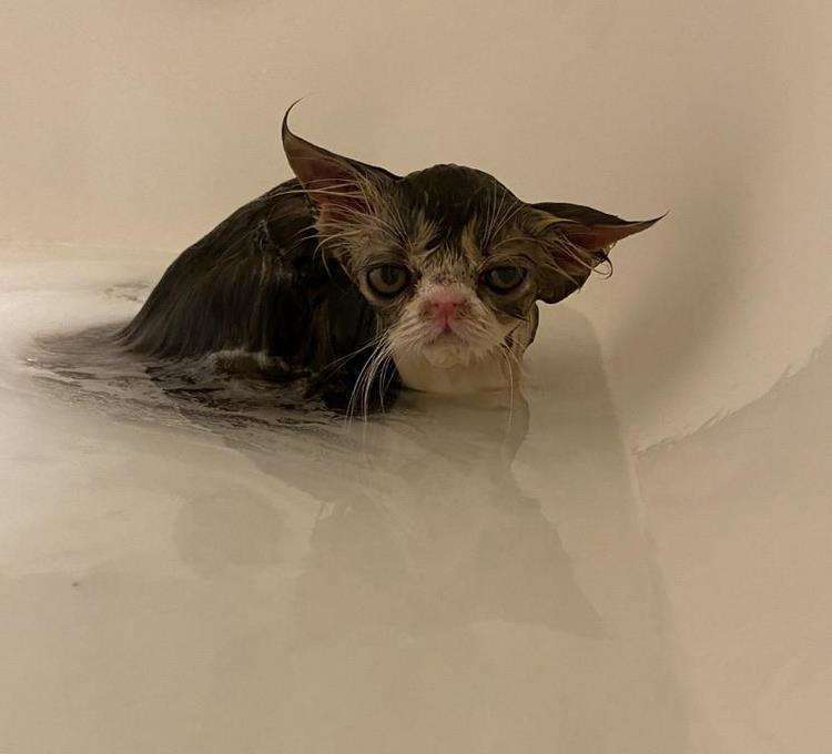“La gente si è precipitata a prendere la gattina (ragazza) e portarla in vita il prima possibile. Un volontario si è offerto volontario per portarla a casa. Faceva molto caldo quel giorno, il gattino non poteva durare a lungo in tali condizioni”, affermano gli attivisti per i diritti degli animali. Le hanno fatto il bagno, hanno tirato fuori tutte le pulci con le formiche.