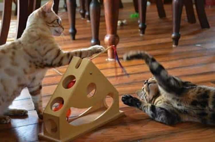 Anche i gatti pigri domestici hanno bisogno di esercizio per mantenersi in salute e sprecare energia. Pertanto, cerca di giocare più spesso con il gatto o dagli la possibilità di farlo da sola.
