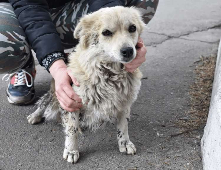 In un primo momento, l'animale ha camminato per le strade in cerca di una casa. I residenti hanno iniziato a dare da mangiare al cane, chiamato scoiattolo. I cani randagi locali hanno subito preso in antipatia il poveretto, il cane ha dovuto respingere gli attacchi situati nei locali dello stabilimento. Il cane si sporcava costantemente nell'olio, che copriva i dettagli della rovina. Ben presto, la lana cadde e si appiccicò.
